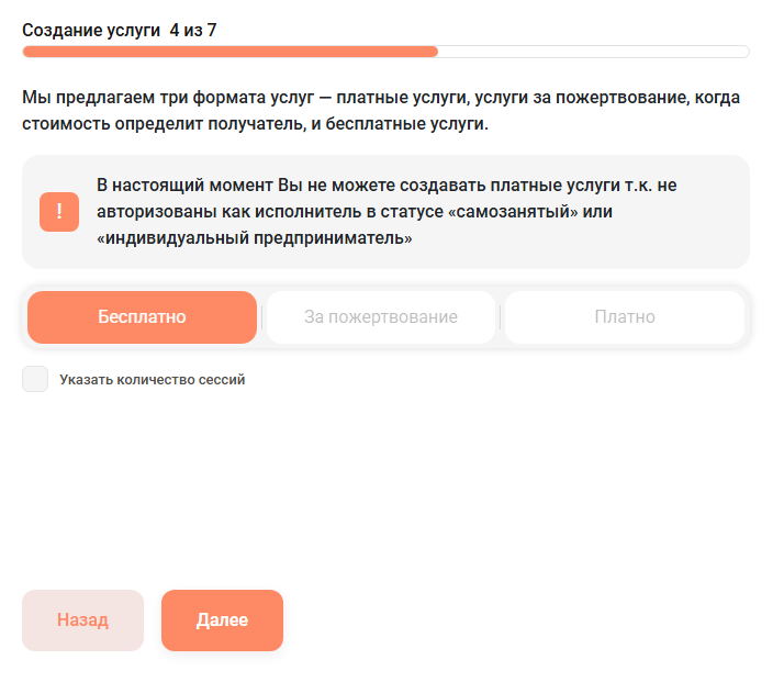 4. Выберите категорию услуг, онлайн или офлайн формат (укажите, в каком городе)